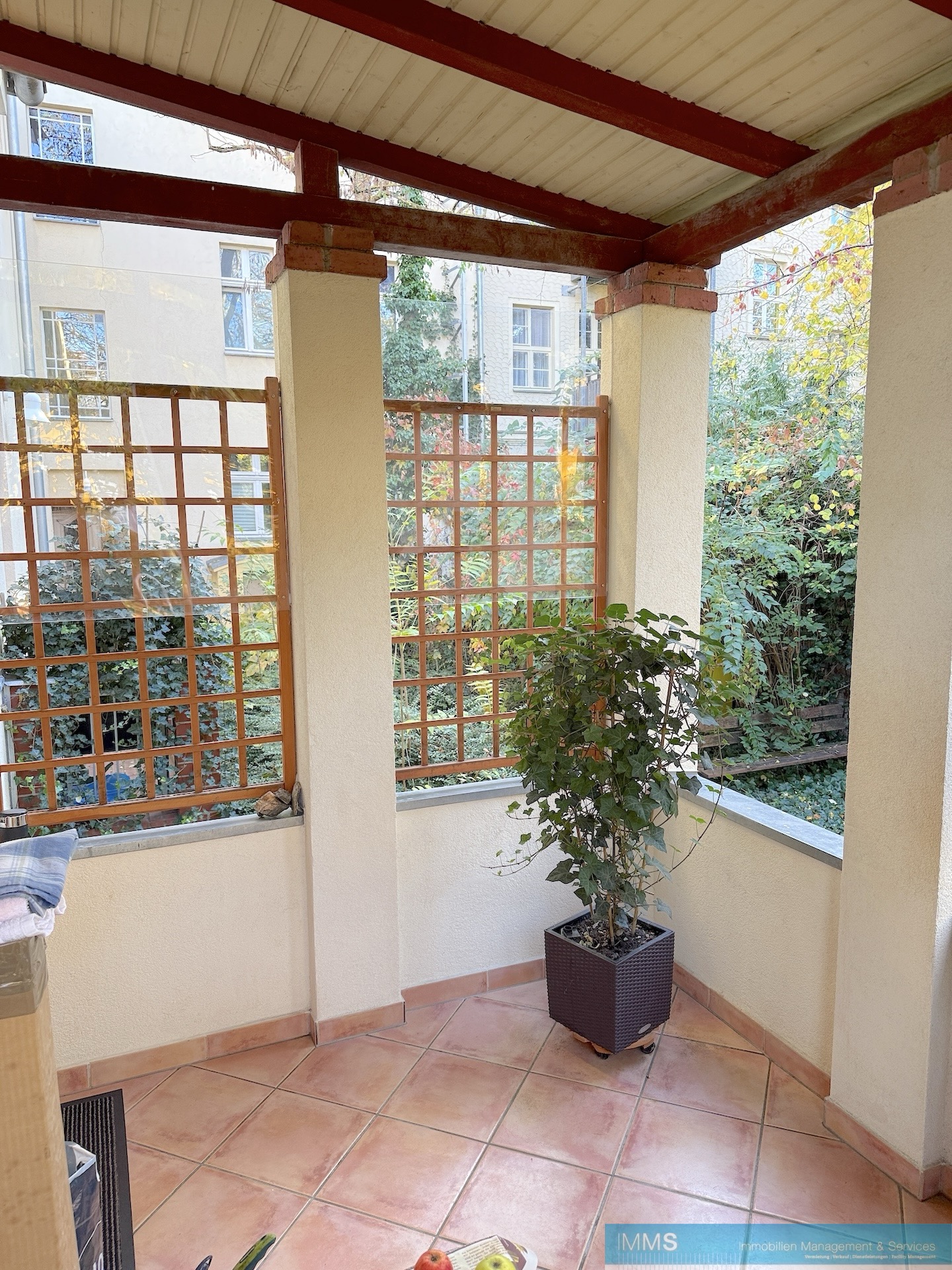 2-Zimmer-Wohnung, ca. 70 m² – im HP (Hochparterre) des Gartenhauses eines historischen Altbaus (1771 erbaut) mit großer überdachter Terrasse und kleinem Gartenanteil. Die helle Wohnung ist mit modernen Holz-ISO-Fenstern, Zentralheizung sowie zentraler Warmwasserversorgung ausgestattet und komplett renoviert, das heißt alle Wände sind frisch weiß gestrichen, die Wohnung ist somit einzugsbereit. Die Räume bieten jeweils sehr hohe Decken und abgezogene Holzdielen. Der Flur ist mit geschmackvollen Terrakotta-Fliesen belegt, Küche und Bad sind auch gefliest. Das Wannenbad mit Fenster ist neutral hell gefliest und lässt auch Platz für Ihre Waschmaschine und ist mit Badezimmerschränken, einem eleganten Waschtisch und einer Duschwand ausgestattet. Die Küche ist ohne Ausstattung und lässt Platz für einen kleinen Tisch mit Stühlen am Fenster. Selbstverständlich dürfen Sie sich auch über einen Keller freuen und einen Fahrradkeller gibt es obendrein. Hier finden Sie eine liebevolle Wohnung, die mit ihrer großen Terrasse und dem Gartenanteil unverwechselbare Gemütlichkeit bietet und das in der Potsdamer City. Wir sind uns sicher, es wird Ihnen gefallen, sehen Sie selbst …